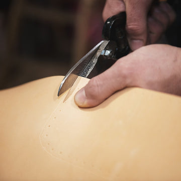 Seguendo il modello, l’artigiano taglia le pezze di cuoio necessarie per creare un prodotto. Col taglio, l’articolo Dealfa inizia ad emergere dalla pelle, ed è pronto per la trasformazione da semplice pezza ad accessorio ricercato.